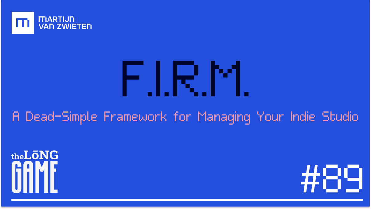 Issue #89 Hello friends, Greetings from Utrecht! Over the holiday break I completely reworked the FIRM notion template. It now looks better, flows better and has better structure and explanation, all so you will have an even easier time using it to run your own indie studio with more confidence, less friction and better results. Enjoy! The FIRM Framework for indie studio management If you're like most indies, your priorities are simple: finish the game first, everything else second. And even...